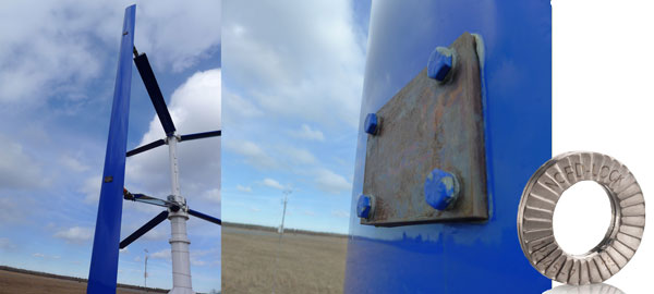 Since the bolts need to be drilled into the concrete and the drilling machine might not be positioned at an exact 90-degree angle, the risk of inclination needed to be addressed. For that reason, all concrete bolts used were secured by Nord-Lock X-series washers. Their conical shape compensates for the inclination, while the wedge effect prevents spontaneous bolt loosening due to vibration.