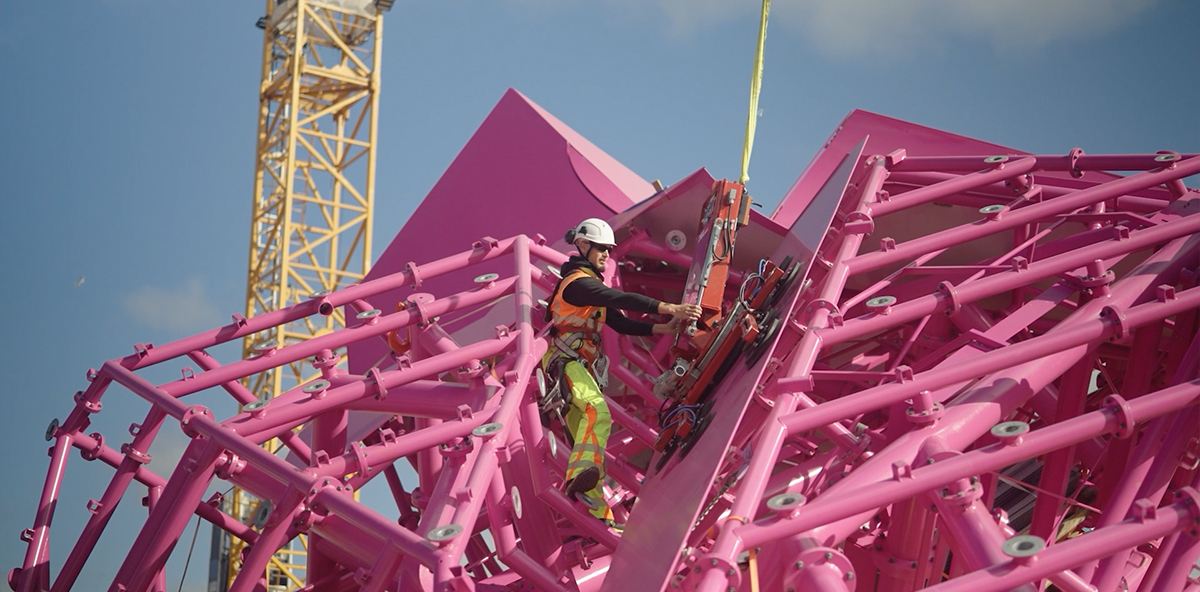 Besides the issue of potential loosening of bolts, a humid climate, with occasional harsh, salty winds presented another problem while assembling and erecting bLINK – corrosion. As an artist, Katharina Grosse has naturally had a clear vision of aesthetics. So, for bLINK to retain its distinctive, all-encompassing, radiant pink color for years to come, it was crucial that the components used to assemble bLINK would not rust and, as such, change color. Fortunately, the issue of corrosion—and the potential discoloration it could cause—was something the NLss-254 could handle.
