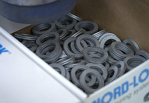 The geometry method utilizes the shape of the fastener to secure the bolted joint in place when subjected to vibration and dynamic loads. The most common system, wedge-locking washer, is composed of a pair of washers with cams on one side and serrations on the other. The serration forces any rotational movement to occur between the washers and the geometry of the cams introduces a need for an increase in tension in the bolt if the bolts want to rotate loose. This safely secures the joint. |